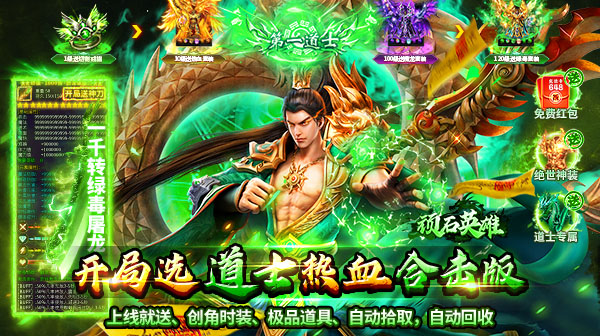 1.创角即送时装、暴打策划狗头称号、海量元宝、自动回收、自动拾取。